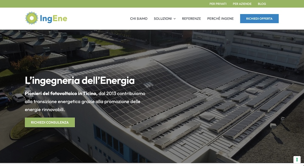 IngEne è un’azienda ticinese specializzata in soluzioni energetiche ad alta efficienza: impianti fotovoltaici, termopompe, sistemi di accumulo e stazioni di ricarica.